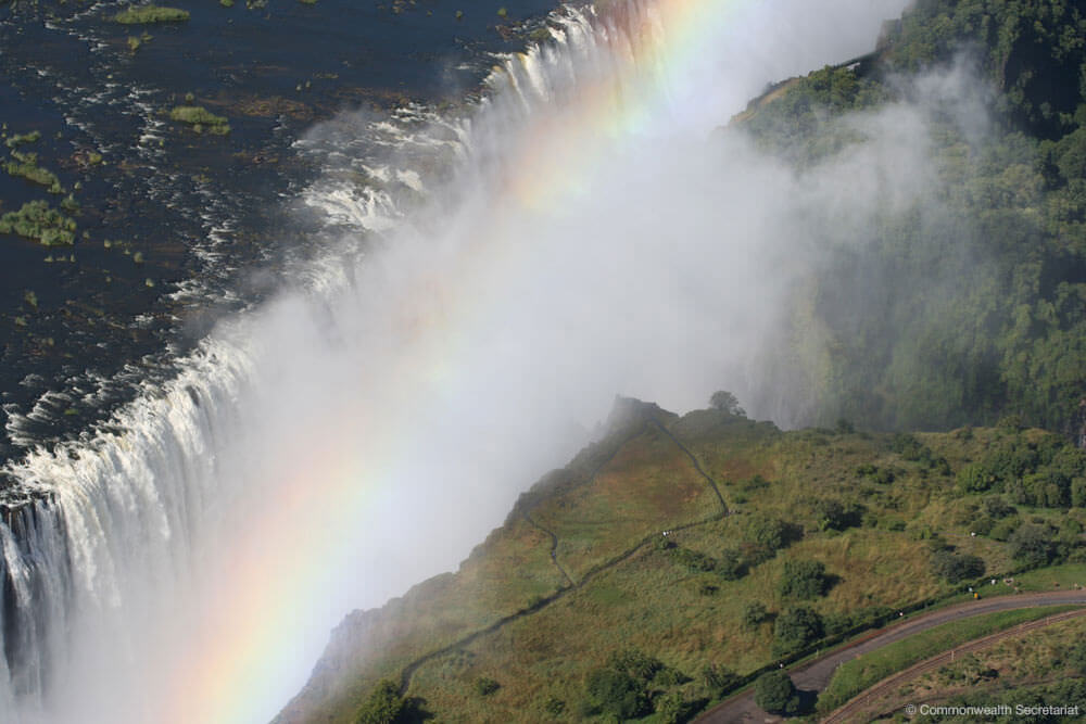 Officially known as the Republic of Zambia, the Southern African country is landlocked and bordered by 8 countries, 5 of which are fellow Commonwealth nations. The Democratic Republic of Congo to the north, which starts at Lake Taaganyika and follows through to the Luapula River driving a wedge into Zambia’s circumference thus giving the latter its distinct butterfly shape; Tanzania to the north-east; Malawi to the east; Angola to the west; and, Mozambique, Zimbabwe, Botswana and Namibia to the south, the latter three of which share a “quadripoint” with Zambia at which their borders meet near the Victoria Falls. With a land area of 752,618 kmsq, Zambia is roughly over twice the size of Germany and is home to one of the most youthful populations internationally. The majority of Zambia’s territory is sparsely populated and clusters of the population reside in the Line of Rail, Zambia’s developed industrial area where railway lines link Zambia’s part of the African Copperbelt with Lusaka, the capital of Zambia, as well as the border town called Livingstone.